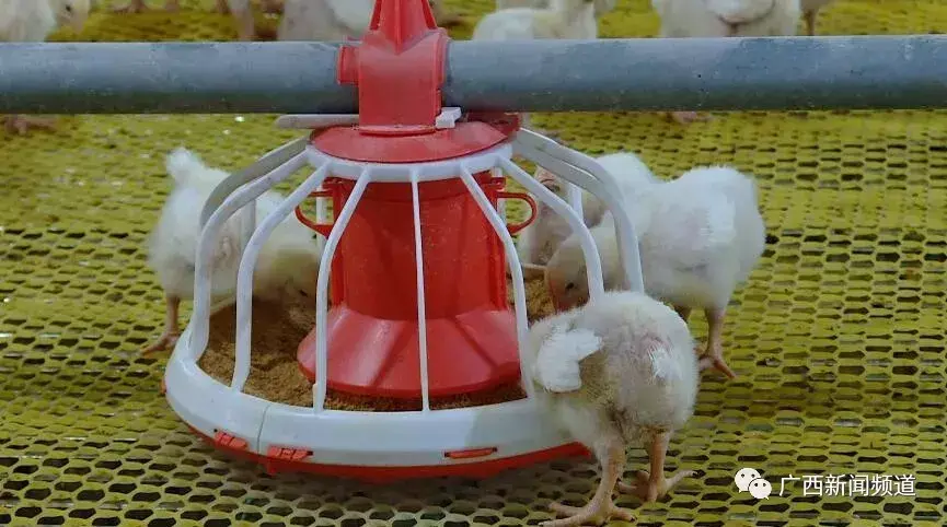 这个饲料配方,我们都是按国家标准,不允许添加什么。小鸡刚孵化出来,我们打过疫苗,防止禽流感,之后我们都不打针了。