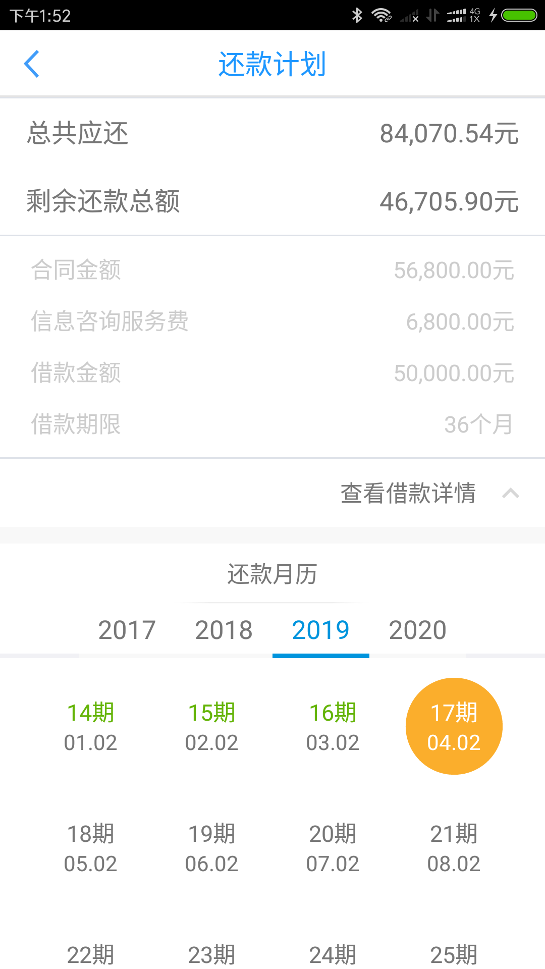 以某网友的借款为例,该网友在宜人贷借款50000元,分36期还款,而合同金额为56800元,其中包含明令禁止的信息服务费6800元,实际到手50000元,存在砍头息嫌疑。