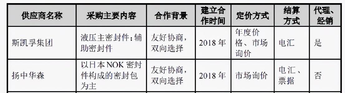 招股书称,唯万密封和斯凯孚建立合作的时间为2018年。然而,根据招股书申报稿,斯凯孚在2017年已位列第四大供应商,采购金额为294.12万元。