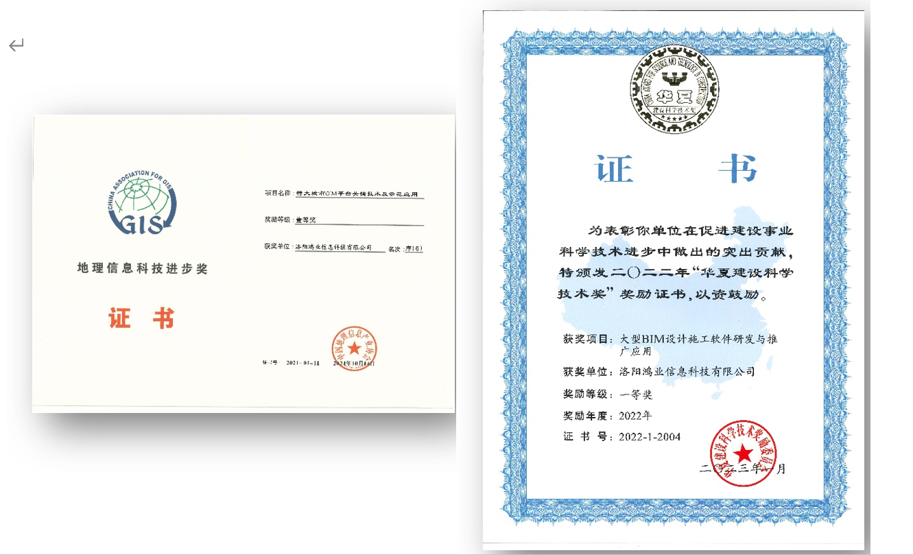 洛阳鸿业信息科技有限公司被认定为国家高新技术企业,拥有河南省人居环境智慧设计与建造工程研究中心、河南省装配式智能化设计与建造工程技术研究中心、河南省企业技术中心三个省级创新平台。在二十多年发展中,参编国家、行业、地方标准20+项、参编辅导教材4本、完成科技部中小企业创新基金2项、近些年共获得软件著作权268项、取得科技成果评估证书及鉴定报告等20+项,科研成果获得国家省市各类奖项12项等。