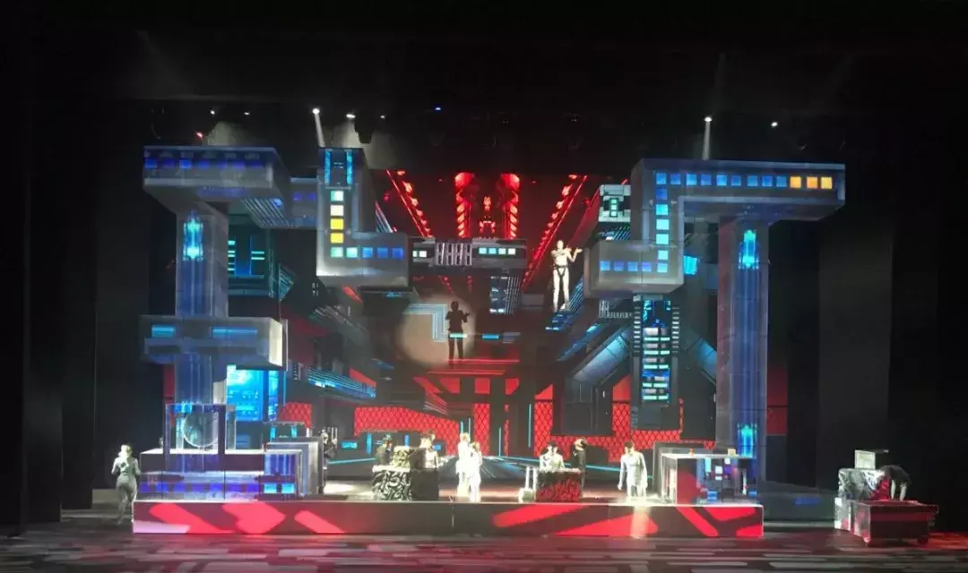 为呈现秦王宫场景,舞美设计团队手工制作了1∶50的模型……剧中秦王宫发生的一切,关于残酷战争的描写,以及对和平与未来美好抚平战争创伤的刻画,将是全剧最有趣、富有情怀和感触、让人为之一振的亮点。剧中未来世界部分,会使用裸眼VR、无人机、机器人等……75分钟内要完整呈现一个故事,节奏切得非常紧张,有很多分镜头的处理,而且幕与幕之间的转换依靠视觉上的错觉,就像是在观看电影一般……