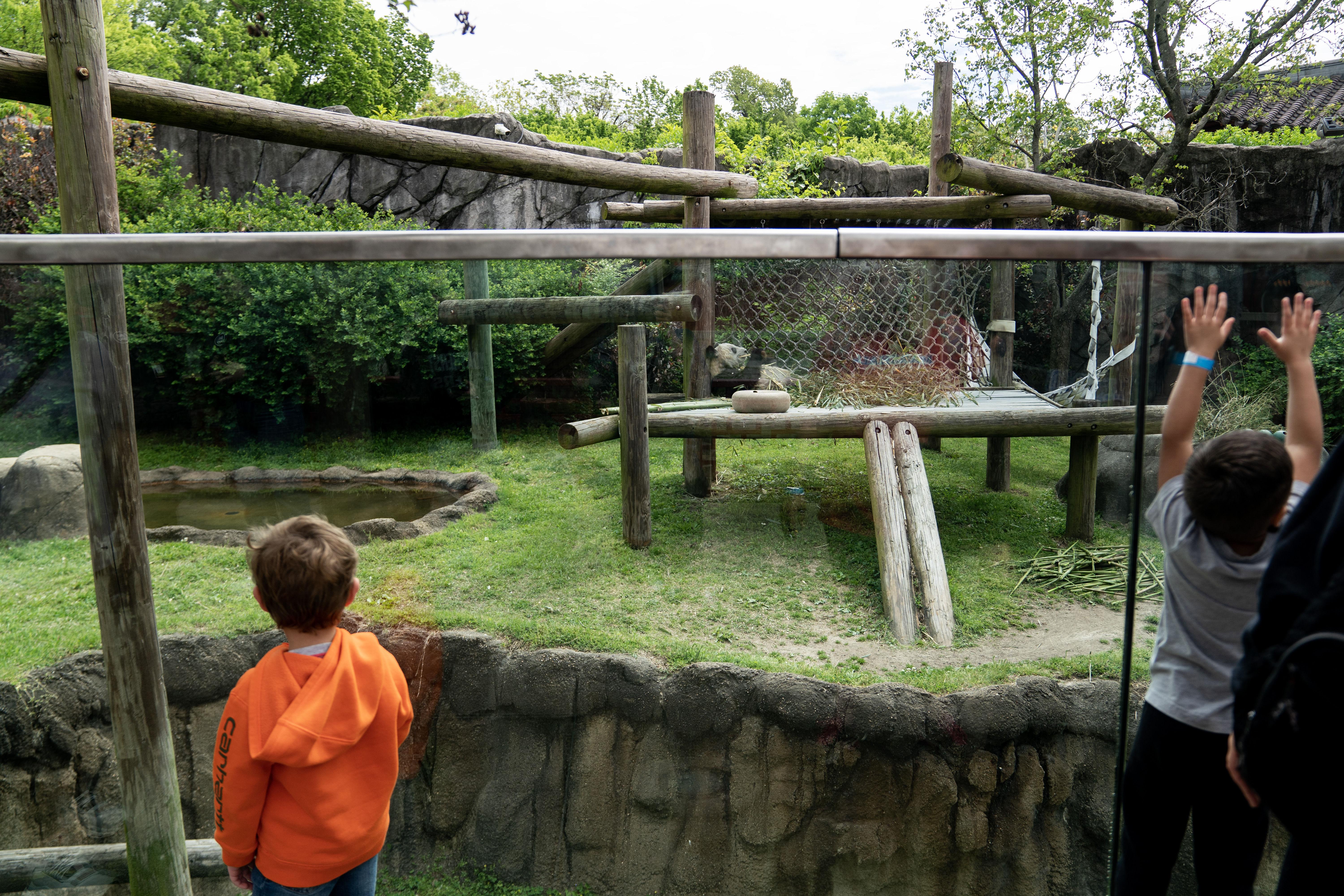 2023年4月25日,小朋友们在美国田纳西州孟菲斯动物园参观大熊猫“丫丫”。图/新华社