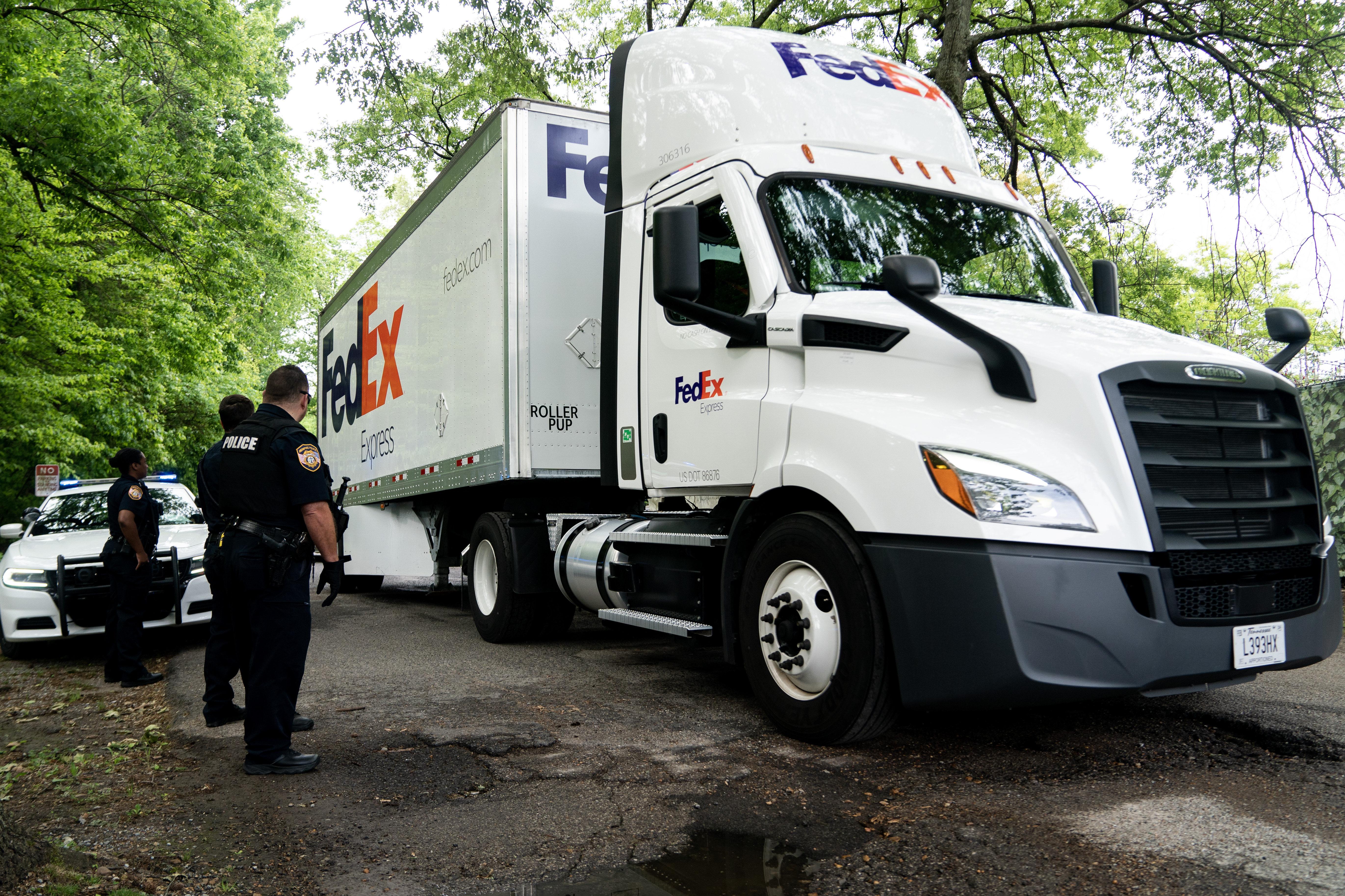2023年4月26日,美国田纳西州孟菲斯,运送大熊猫“丫丫”的车队驶离孟菲斯动物园前往机场,送“丫丫”踏上回国旅程。图/新华社