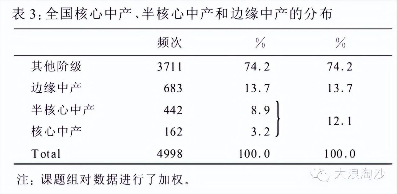 可以看到,在综合考虑了职业、教育等因素之后,中产阶级的比例大约在12%左右,如果算上边缘中产,则占到了总人口的1/4。