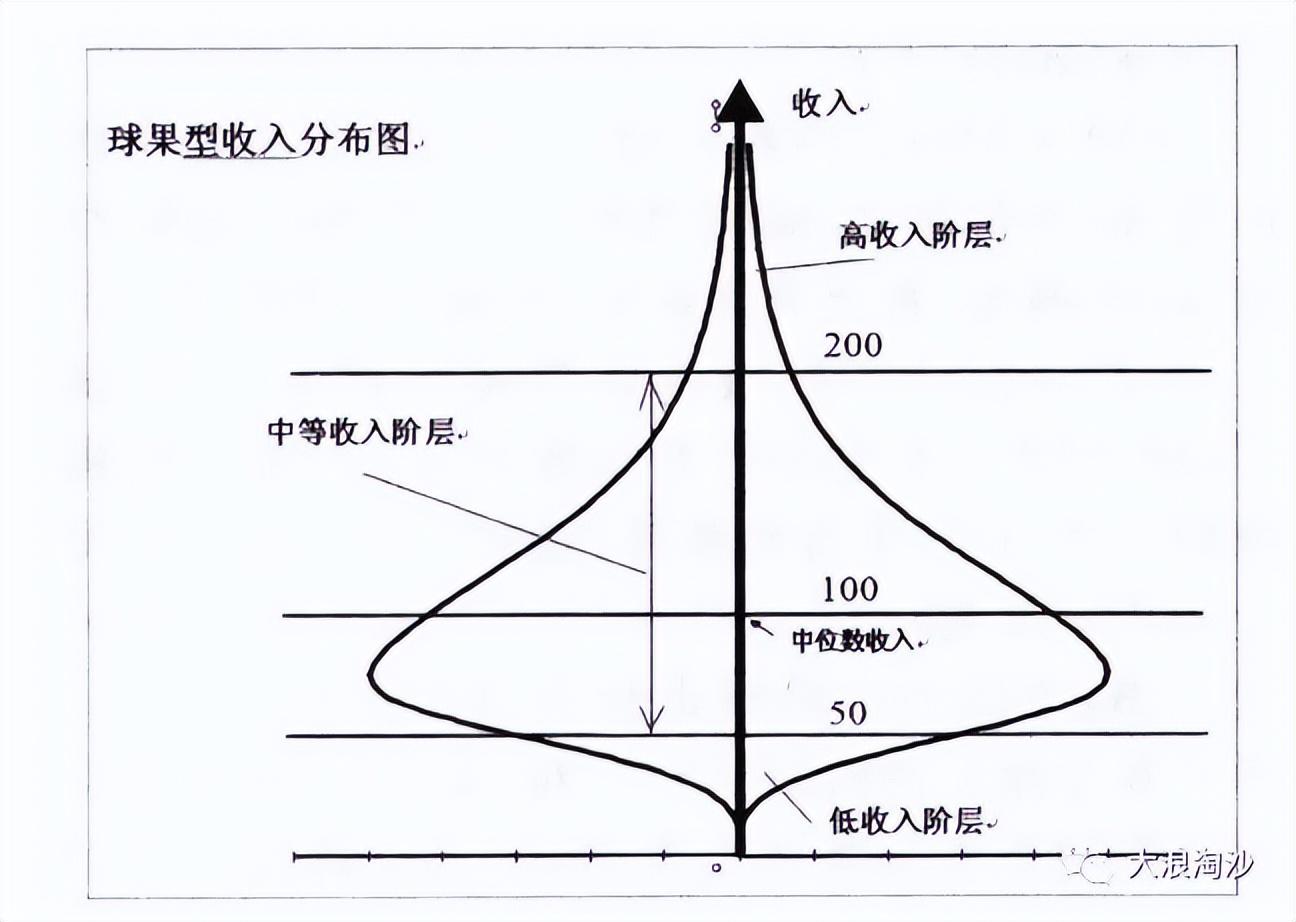 对于如何界定“中产阶级”有许多不同的标准,美国经济学家加里·布特莱斯认为收入在50%——200%中位数收入的人都是中产阶级,这一标准被广泛采用,如图所示: