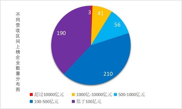 报告显示,“中国交通500强”企业2021年完成总营业收入252404亿元。营收超过1万亿元企业共3家,营收1千亿到1万亿元企业41家,营收500亿到1千亿元企业56家,营收100亿到500亿元企业210家,营收低于100亿元企业190家。