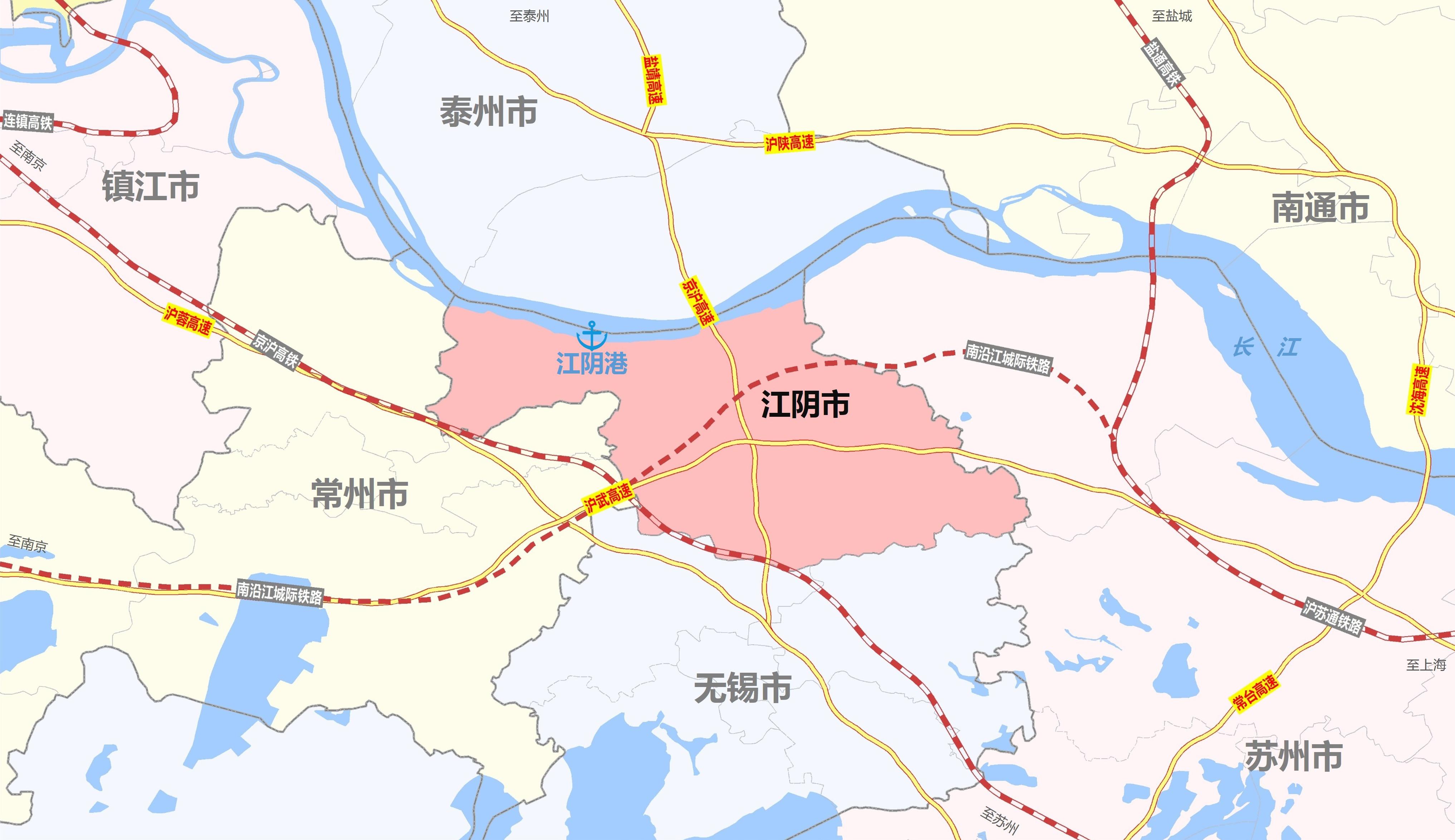 陆路交通方面,京沪高速、沪武高速穿境而过,江苏南沿江城际铁路即将建成通车,届时江阴将正式加入沪宁一小时都市圈,往来南京、上海只需45分钟,江阴正在加速融入长三角,深深嵌入长三角市场体系之中。