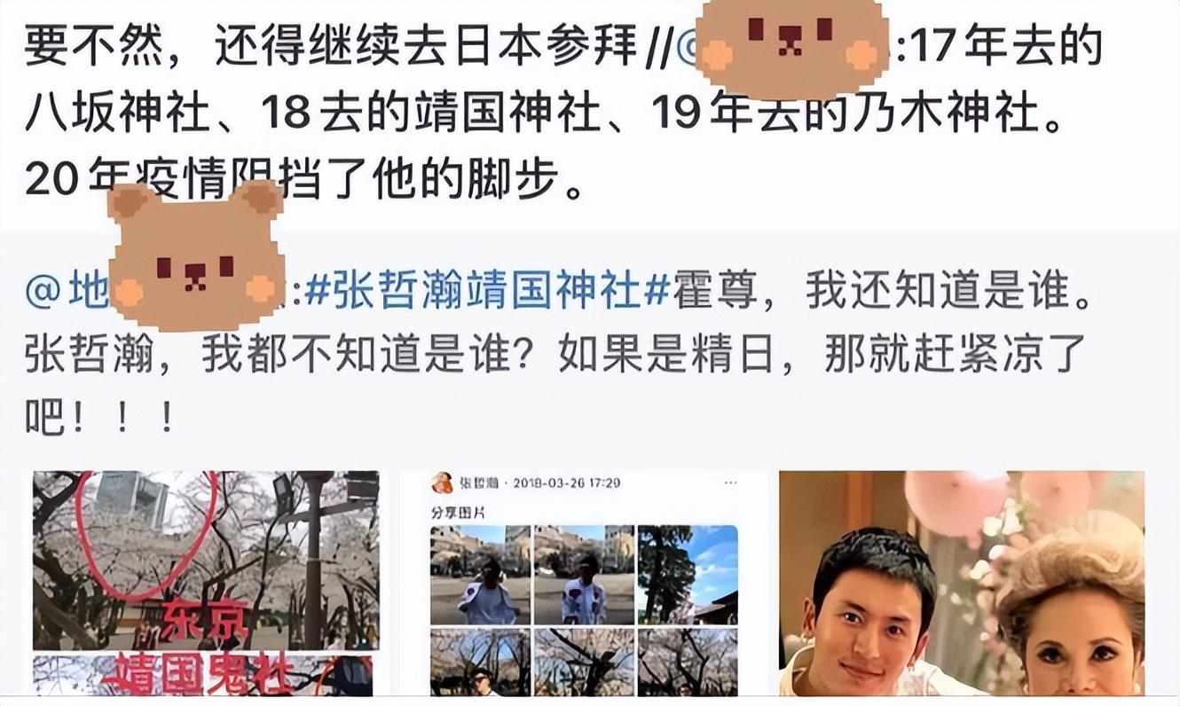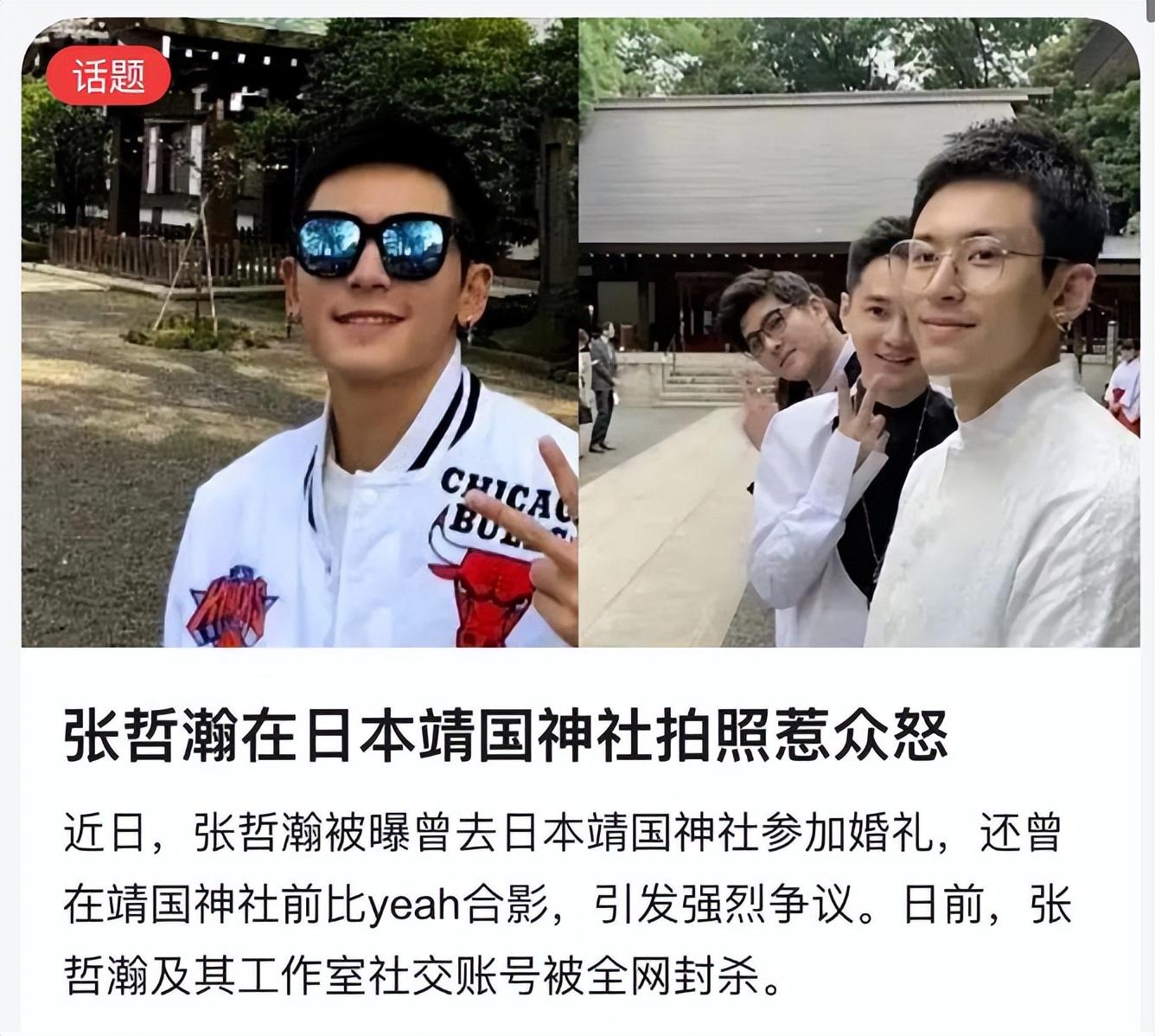 身为中国人的张哲翰,居然在神社前合照,神情看起来非常愉悦。