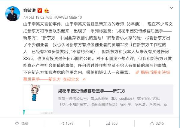 此言一出,舆论哗然,甚至连曾经的老东家——新东方创始人俞敏洪都坐不住了,立即发微博申明,撇清与李笑来、币圈的关系。