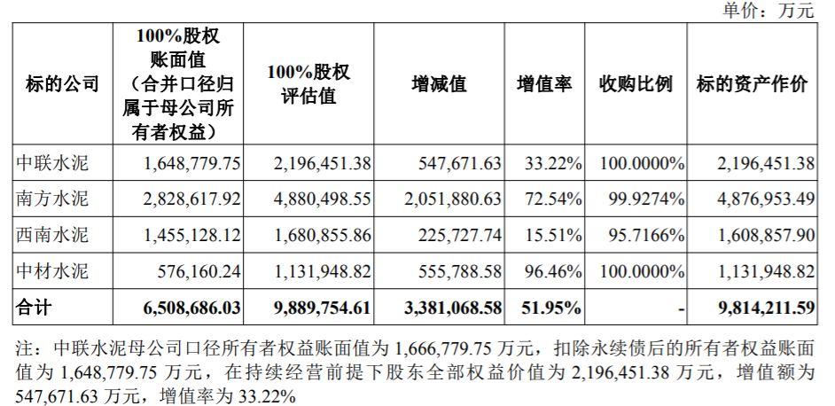 水泥产能提升至约4亿吨以上,水泥熟料产能提升至约3亿吨以上,商品混凝土产能提升至近4亿立方米左右,砂石骨料产能将提升至约1亿吨以上,主营业务及核心竞争优势进一步凸显。同时,通过多元化地域业务分布,上市公司可降低由于地区需求变化、竞争态势差异造成的经营波动,为全体股东带来更稳健的回报。