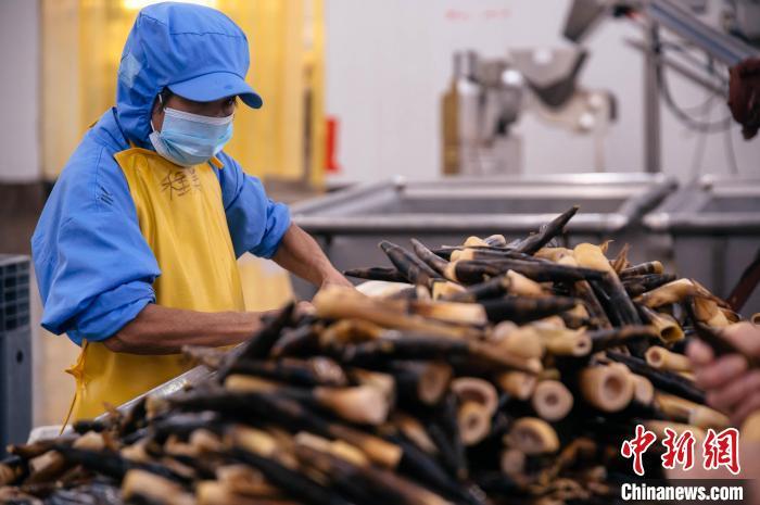 福建明良食品有限公司已深耕建瓯近20年。图为福建明良食品有限公司的手剥笋生产线。 李南轩 摄