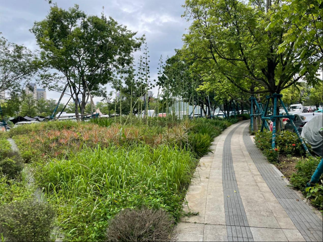 展示中心门口的马路两旁植物已长到半米高,门口保安亭无人值岗,项目的内部道路两边工作日停满了车辆,旁边工地无人施工。而曾计划在开工5年内完工的600米级的超高层建筑显然离建成还有好长一段差距。