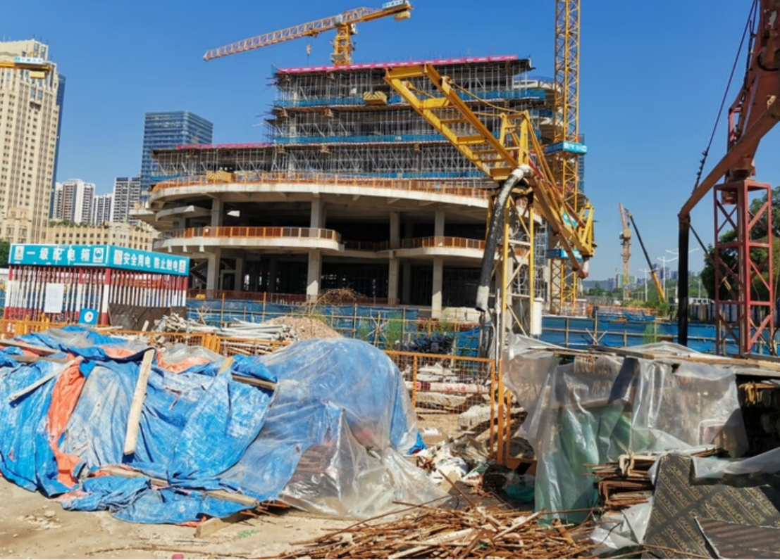 2023年5月,湾财社记者在走访项目现场时,看到二期公寓有“复工复产仪式”的海报。对深港国际中心来说,全面复工复产仍需等待。