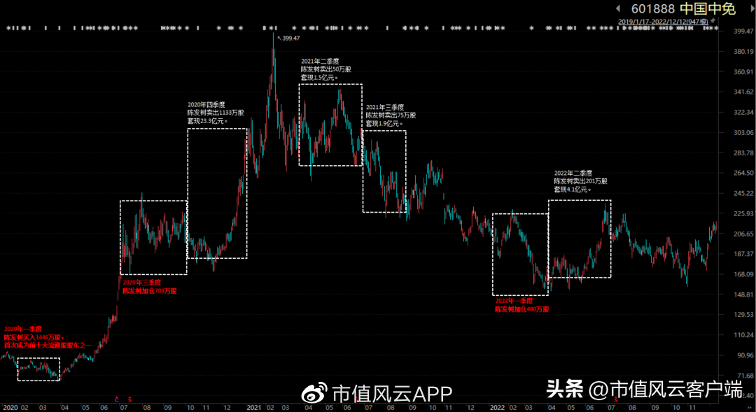 陈发树2020年一季度以1447万股的持仓,出现在中国中免的前十大流通股股东列表中,随后在2020年三季度加仓703万股,在同年四季度股价大幅上涨后减持1133万股,高抛低吸做得非常漂亮,差价赚得非常溜。