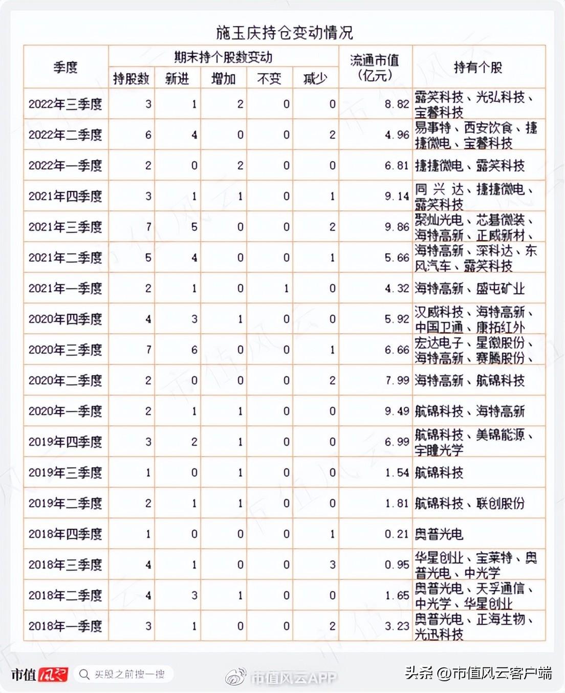 2022年三季度持仓的英飞拓、安妮股份、乾景园林等;