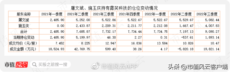 而在2022年三季度,露笑科技出现大幅下跌后,施玉庆大比例加仓2340万股,而同期,屠文斌减持447万股。