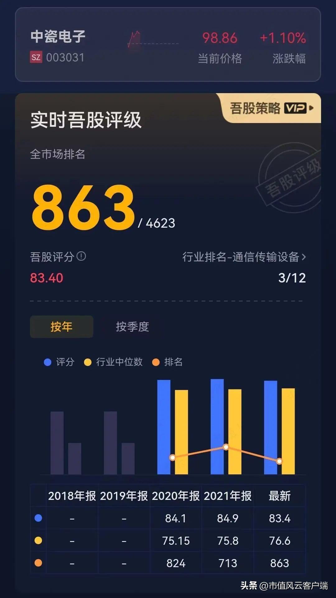 (吾股评级。来源:注册制“买股之前搜一搜”的市值风云APP)