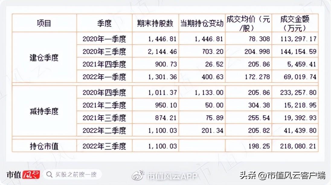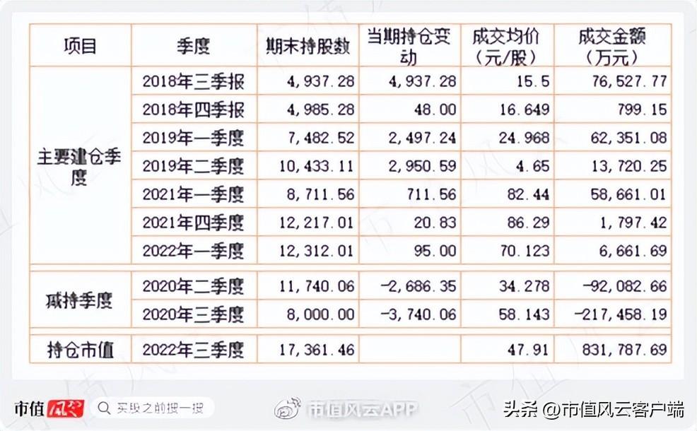 经测算,其建仓总成本在33亿元左右,已套现超过31亿元,截止2022年三季度末还持有1100万股,对应22亿元市值——换言之,这22亿市值几乎全部是浮盈。