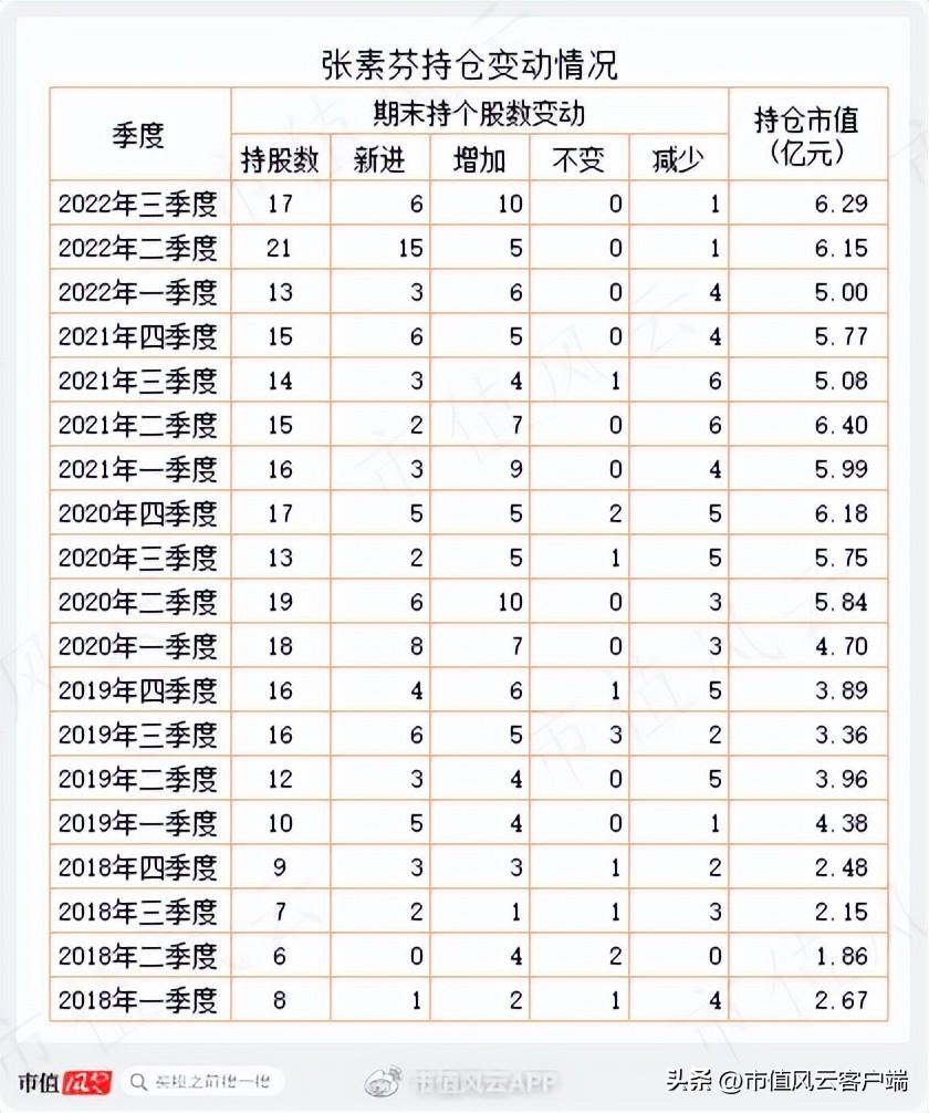 二,持仓市值变动非常大、以两到三个季度的中线持股为主,前一季度持仓市值可能还在10亿元规模,到下一季度很可能就骤降至一半,同样,加仓节奏也很快;