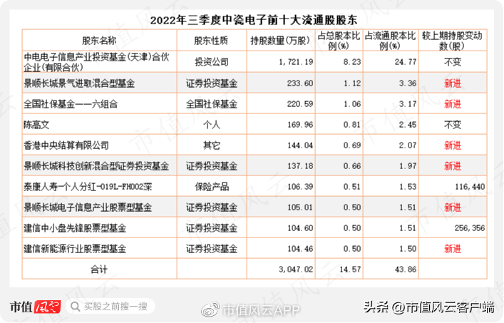 比较有意思的是,在2022年三季度,公募基金、保险机构扎堆买入中瓷电子,10个席位中有6个为新进席位。