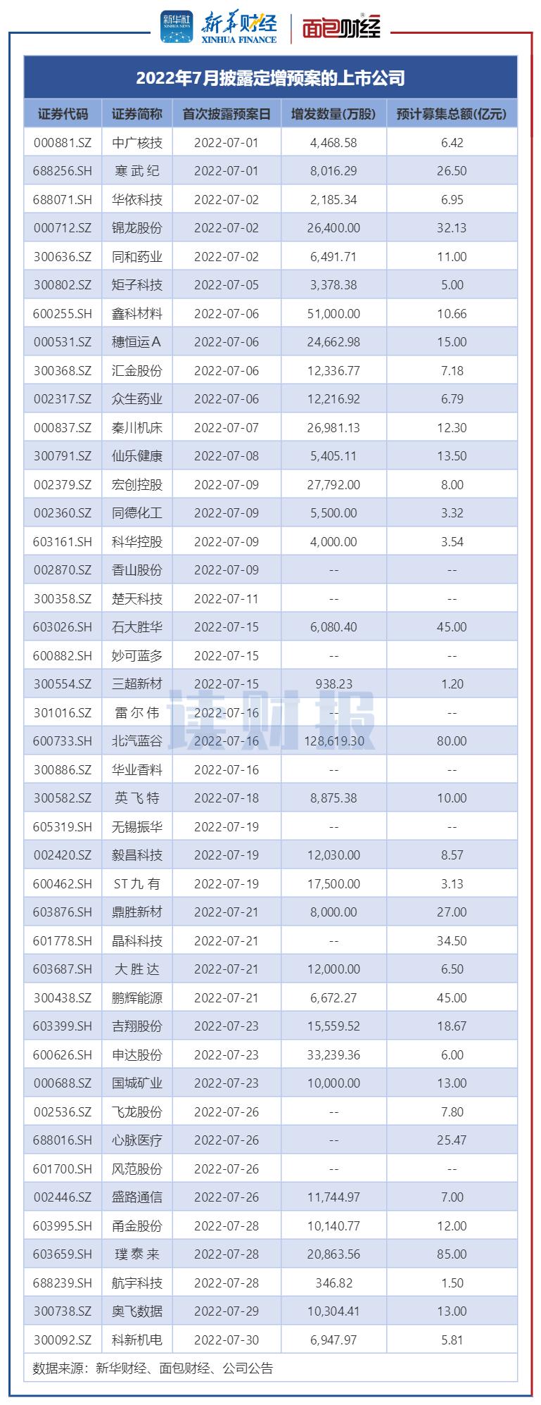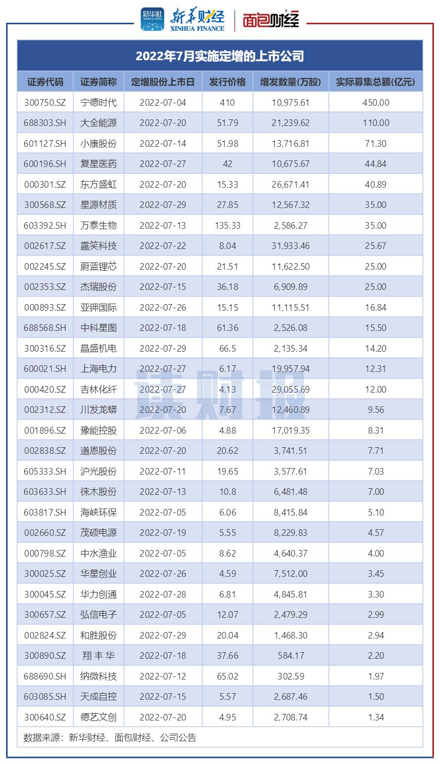 图2:2022年7月实施定增的上市公司(按定增股份上市日统计)