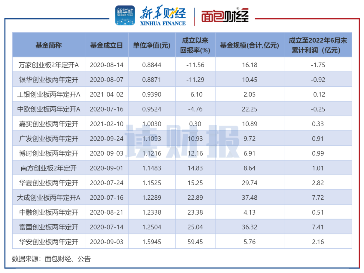 富国创业板两年定开成立以来总回报率为25.04%,跑赢业绩基准逾26个百分点,成立至2022年二季度末的累计利润同样超过7亿元。