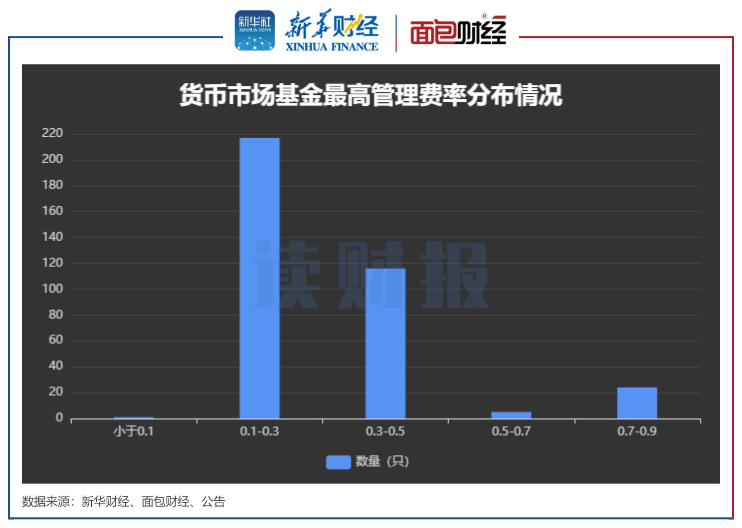最新数据显示,公募货基的管理费率主要分布于0.15-0.33%,费率平均值约0.28%、中位数为0.27%。0.9%的管理费率明显高于市场均值。