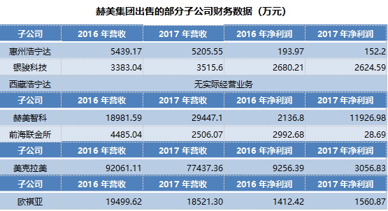 从上文已可见,赫美集团收购的资产亏多盈少,那么其出售的资产情况又如何呢?