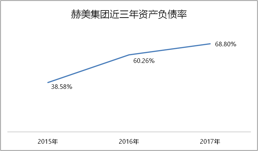公司资产负债率也加速走高。由2015年的38.58%上升至2017年的68.80%。