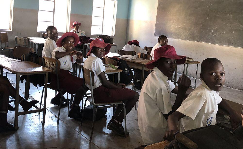 在津巴布韦莫西奥图尼亚中学,孩子们听到了中国调研团来了,惊喜地回头张望。