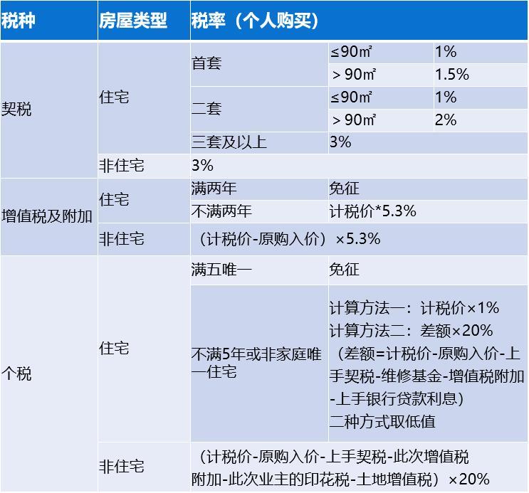 个人购买苏州二手住宅,产生的税有3种:买方要缴纳的契税、卖方要缴纳的个税、增值税及其附加税。