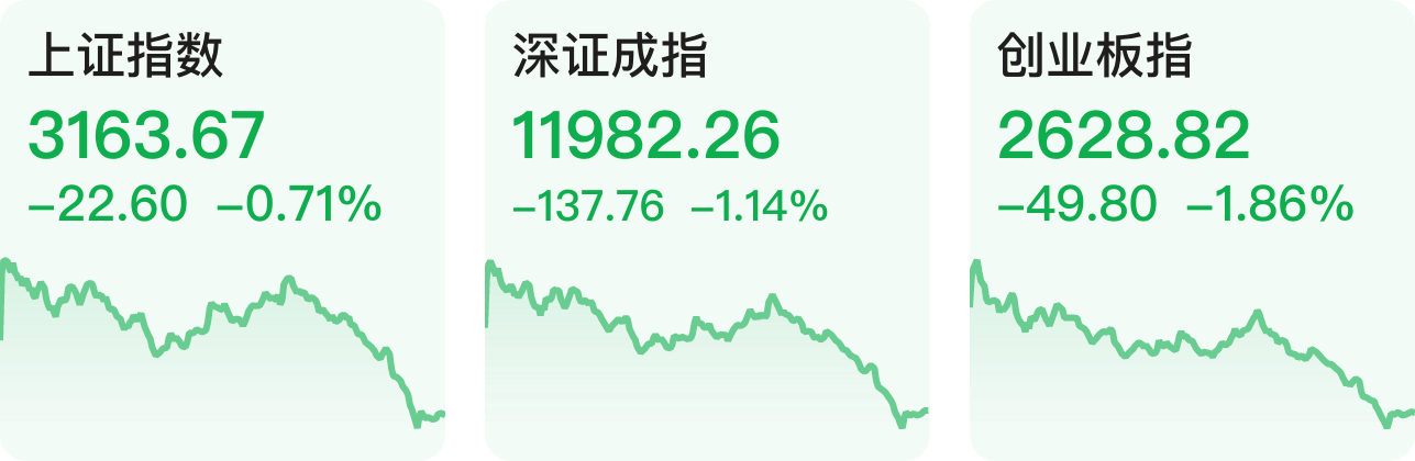 8月3日,A股三大股指早间冲高回落,午后小幅回升后再度下探,截至收盘,沪指跌0.71%,深证成指跌1.14%,创业板指跌1.86%。盘面上,军工、半导体、IT设备、软件服务、通信设备、医药等板块涨幅居前,光刻机、芯片股午后走强,一体压铸、HJT电池、电气设备、猪肉、房地产、锂矿、光伏等多数板块飘绿。两市近3000只个股下跌。
