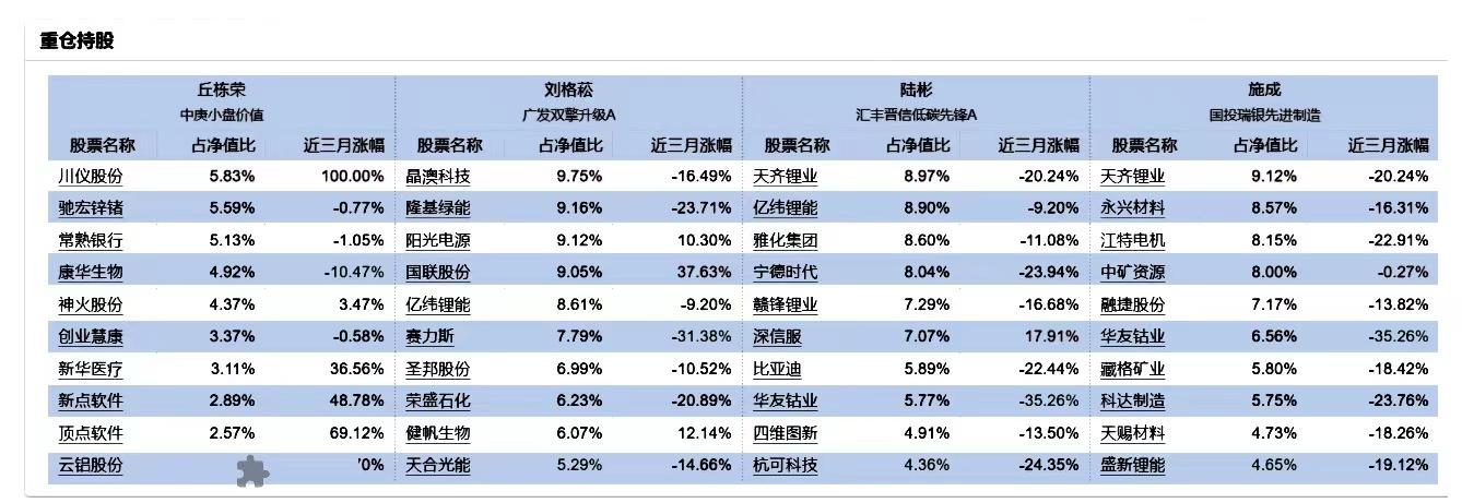 基金经理代表作基金重仓持股
