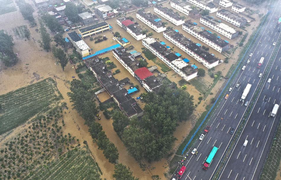 7月22日拍摄的卫辉市黄庄村(无人机照片)。新华社发 麻翛然 摄