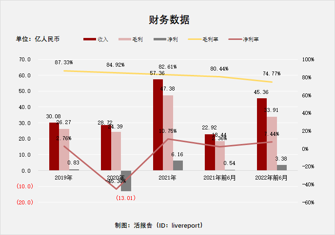 收入分别约为人民币30.08亿元、28.72亿元、57.36亿元、22.92亿元及45.36亿元,年复合增长率为38.09%;