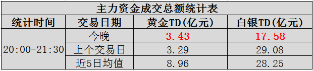 晚间金银大资金成交量对比情况如下: