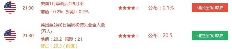 晚间美国公布了CPI和当周初请失业金数据: