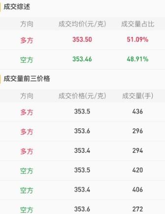 当前黄金TD成交密集区为:上方354元/克;下方350.60元/克。