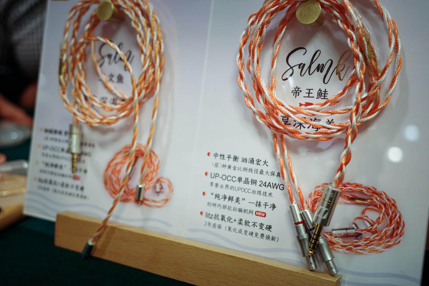万隆,没错,就是那个线基很牛逼的万隆,终于针对耳塞线开始打造成品线材、并打入主流HIFI市场了,这次推出来的Salm和Salmk都是属于同一个三文鱼系列,采用四层三种规格的UOPCC单晶铜材料打造,内、中、外层的线径是同一种材料、但线径做了递减,从而达到针对低、中、高频段起到强化的作用,Salmk的内芯会比Salm要粗一些,二者的售价分别为1599起和2199起,支持定制可换插头与全套可换插针。