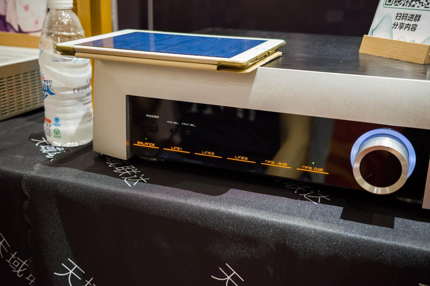 这是一台纯解码,但它除了RCA以外还配备了4.4的Line Out,意味着你也可以直推耳机,但事实上它直推耳机并不好听,软塌塌的,还很闷,正途肯定是用来搭配纯耳放使用,好处是能够接蓝牙。老实说参展方去让用户接手机蓝牙给这台解码、然后再直推耳机,如果是搭配他们展台64家的塞子应该还算能听,接别的就不太好说了,建议以后还是搭配一台耳放去给烧友试听。