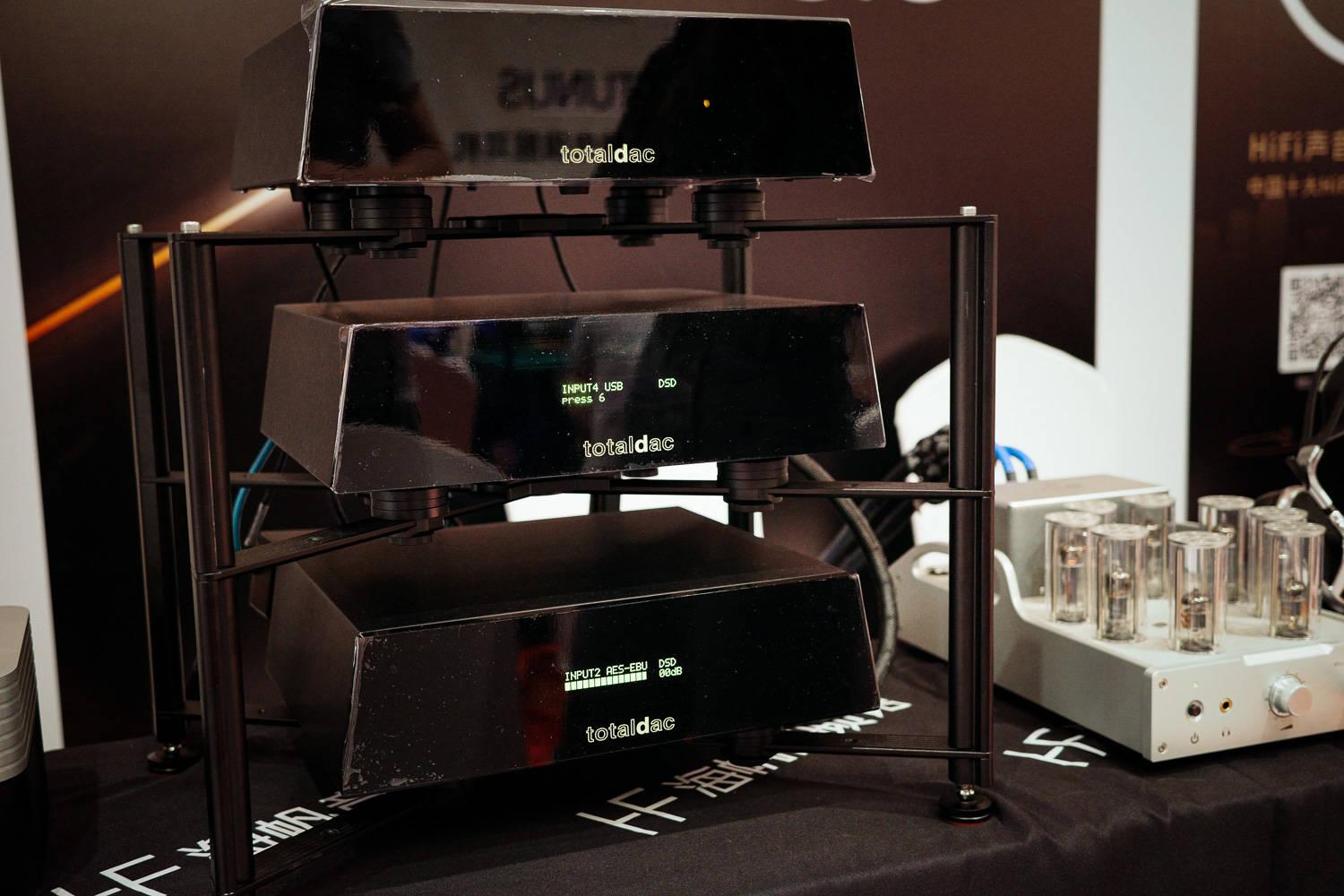 Totaldac本次展出的是单体解码器的旗舰机型d1-direct,播放端用的是Totaldac自家出品的d1-streamer mk2 ,内置了reclocker mk2的d1-streamer mk2是Totaldac 最新推出的支持Roon ready 的型号,只需要插上电源,接入网线,无需任何操作,即可以享受Roon,Tidal ,qobuz或者一切支持dlna的播放软件和airplay,此外还接了个d1-switch ,Hiend级交换机。