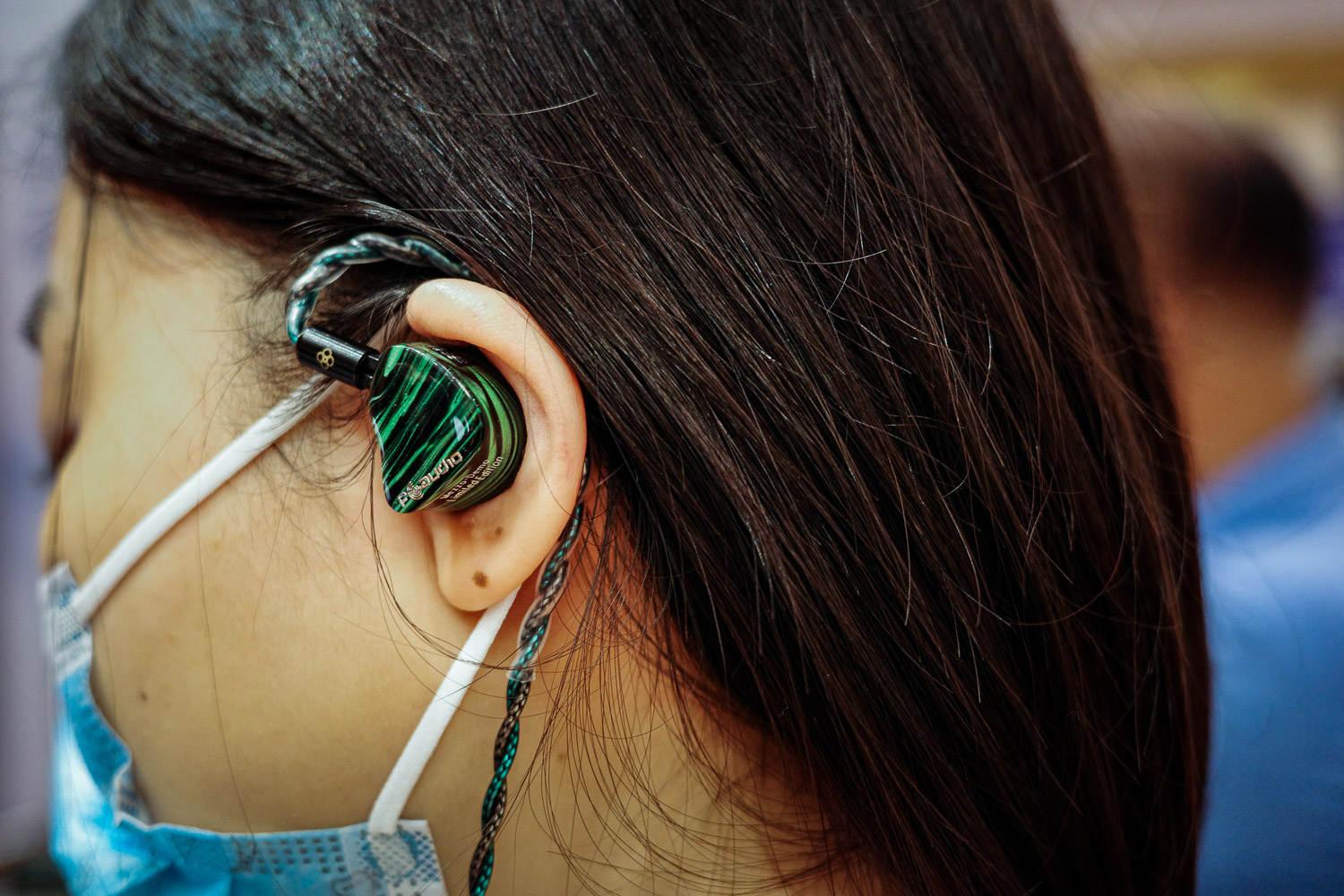 这个牌子可以说要什么有什么,展台上随便拿起来听了两款都很靠谱,要立意有立意、要设计有设计、要颜值有颜值,佩戴全部都是短导管设计来配合更大多数的人群,我戴着反而会有点松,需要多换换套子。