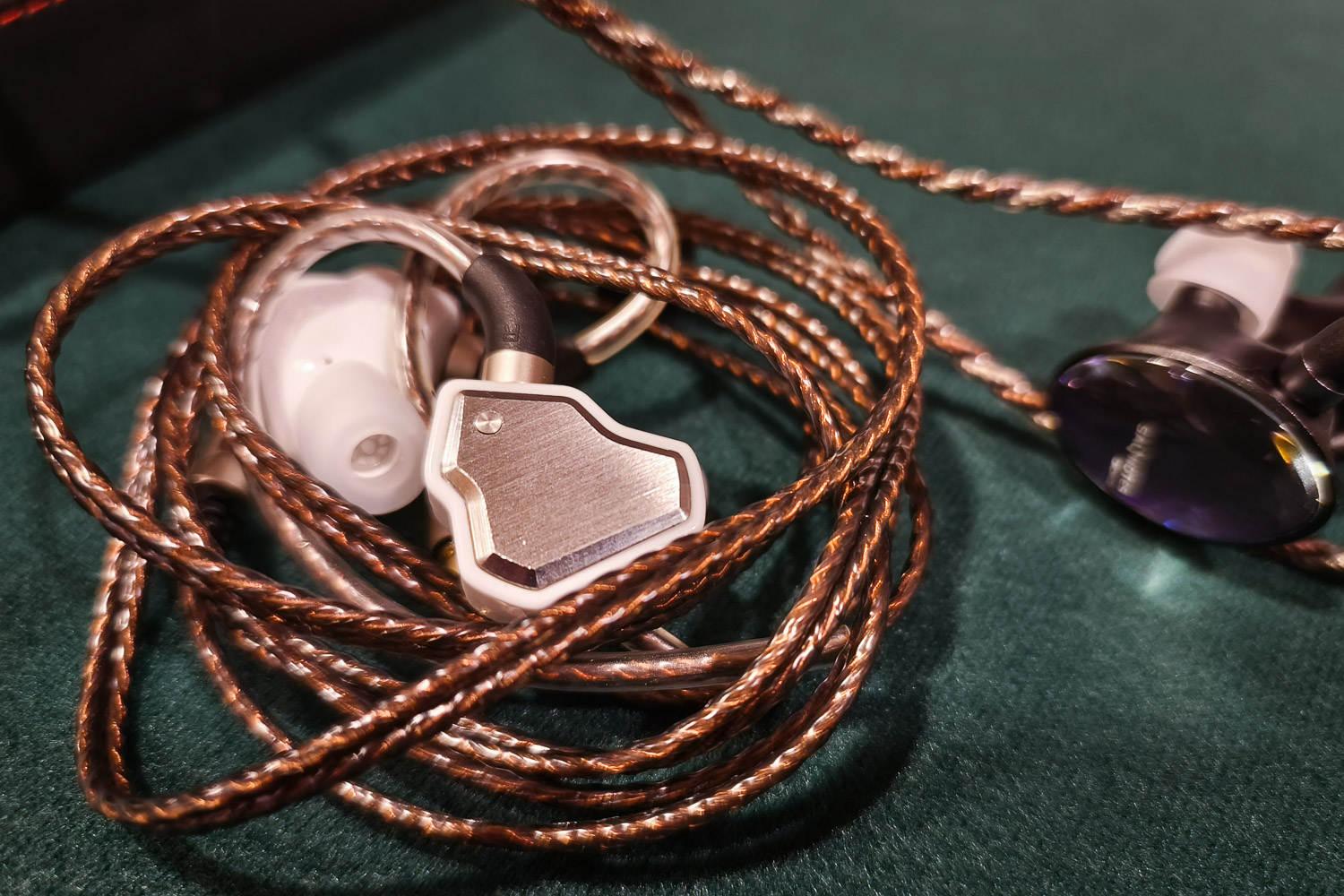 图上的这款纯铜线据说是ET憋了很久的大招,售价两万不到,音色方面和大家刻板印象中的“传统铜线”如出一辙,温暖、有厚度、氛围感强,声音比之前的那款伊涅德要更加的宽松、有肉感,人声的那种味道来自于蓬松度和暖意的赋予,而不是靠染色,同时声场还很宽大。目前的低频结像有点散,鼓点的中心部位感受不到明显的实体,正式版如果改进了,那可以说旗舰塞线行列又增加了一个铜线T0选手。