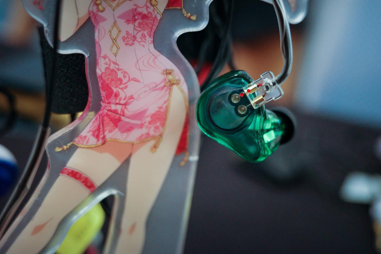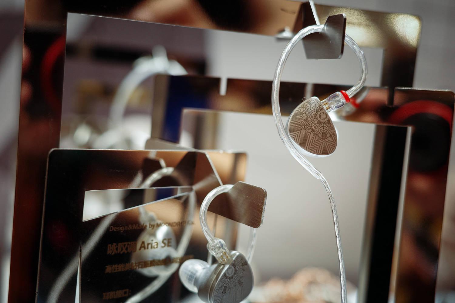 技术部分我就不去解读了,但既然这位姐姐这么热情,我还是认真听了他们展台上的三个型号,分别是单动铁、和2个圈铁。其中单动铁的声音略显失望,卖到接近千元,并没有克服频宽上的短板、而且透明度也不高。旗舰Band8的声音和单动铁走向类似,醇厚、密度不错,偏男声一些,氛围感还不错,但几乎没有什么极高频延展、声场还算宽、但是扁,次旗舰Band5倒是通透清亮一些、人声结像较小,声场不宽、但纵向不扁了。现场有位男士指出可能Band5和8的位置放错了,但塞子本体没有写型号,我也不敢确认......