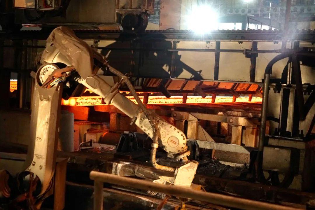 加大3D岗位机器人应用。已实现炼钢LF炉机械手自动测温取样、连铸大包自动浇钢、高一工序线卷机器人自动焊标、翻车机格网自动清理、钢结构基地管道机械手智能焊接等项目。其中“LF炉机械手自动测温取样”项目,以工业机器人替代人工测温取样,实现测温取样无人化,安全性、稳定性、准确性更高,冶炼过程更加高效、标准、可靠;“连铸大包自动浇钢”项目,以机器人代替人工,完成大包滑板油缸装拆、长水口装拆,中间包测温取样、覆盖剂分拣等操作,行业内首次实现“大方坯连铸自动浇钢”。