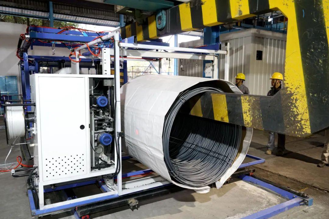 韶钢高端工业线材套袋机,以自动化手段,推动3D(脏、累、险)岗位少人化、无人化,实现安全本质化,制造清洁化。