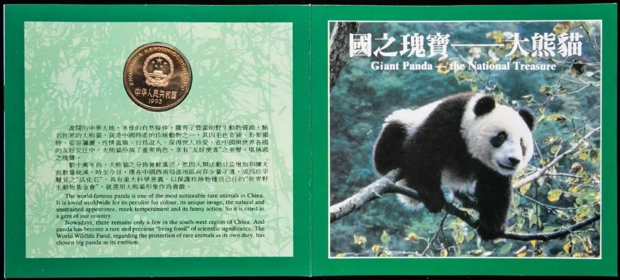 1993年中国珍稀野生动物-大熊猫流通纪念币一枚
