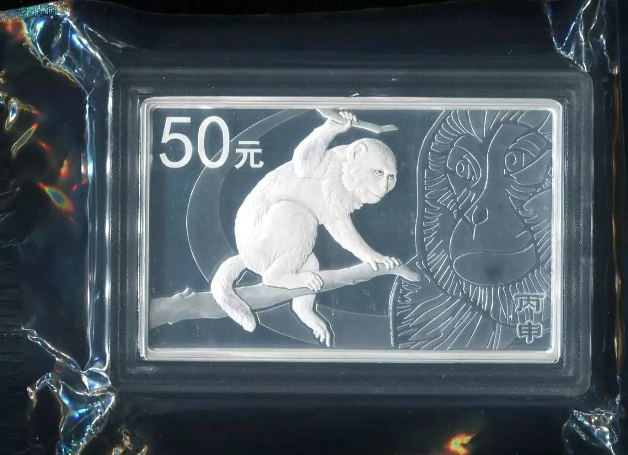 2016年丙申猴年生肖5盎司长方形精制银币一枚