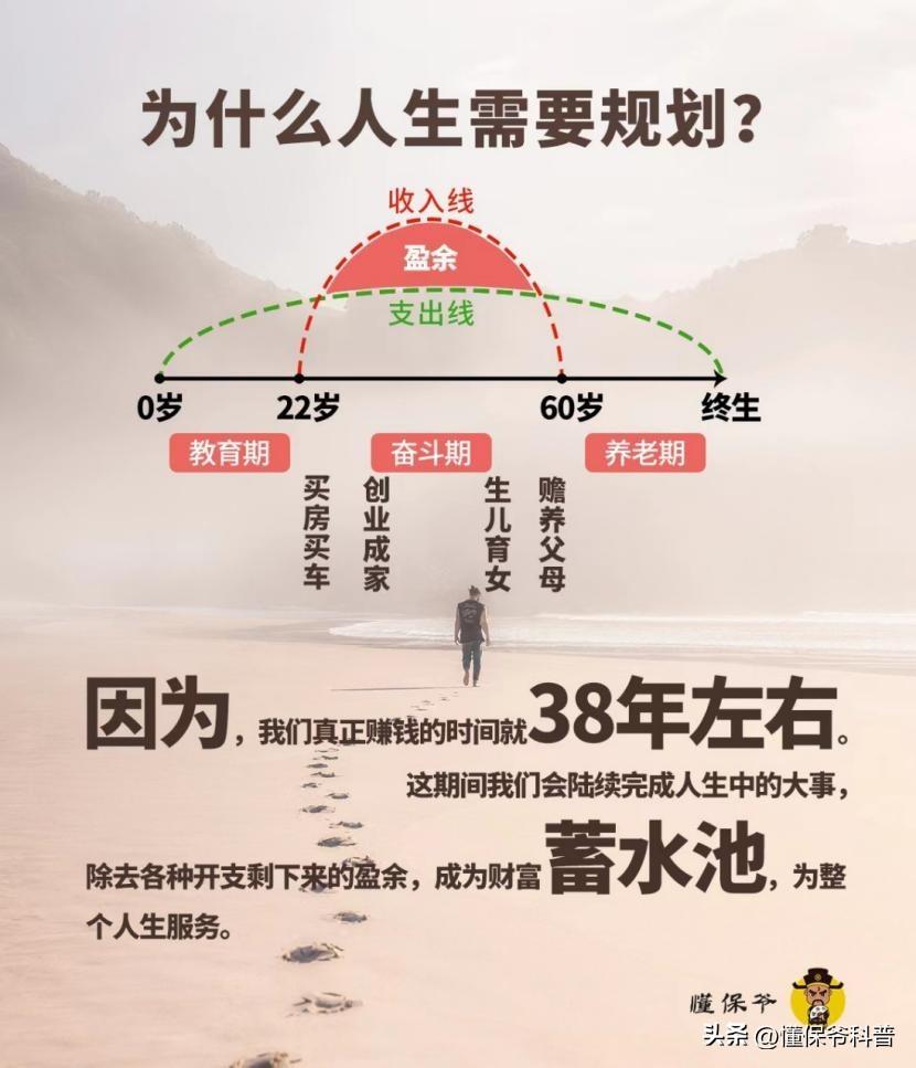 包括奋斗期需要的买房买车、成家立业、生儿育女、赡养父母,包括自己60岁以后的养老期和下一代的教育期。