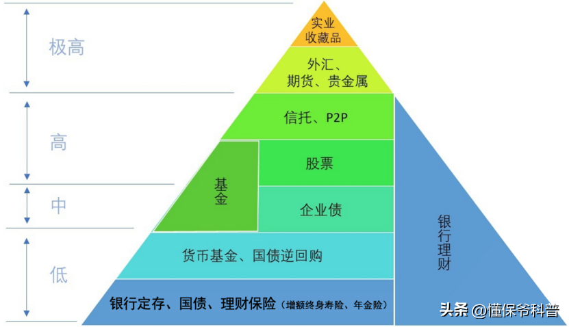 如果你是风险厌恶者,那就抱着最底下的银行定存、国债、增额寿险、年金险这类安全资产就行了。